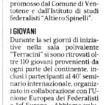 Il 6 settembre l’Istituto di Studi Federalisti “Altiero Spinelli” ha concluso la 43° edizione del Seminario di formazione federalista organizzato con il Comune di Ventotene e il patrocinio della Provincia di Latina e grazie al contributo della Regione Lazio.