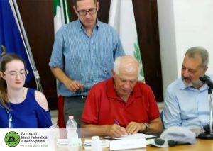 Nel pomeriggio di domenica 1° settembre, si è tenuta presso la sala consiliare del Municipio di Ventotene una riunione per la ricostituzione del Gruppo Spinelli nella de­cima legislatura del Parlamento Europeo. Il Gruppo Spinelli è l’intergruppo federalista al Parlamento Europeo, creato per sostenere la lotta di Altiero Spinelli e dei federalisti euro­pei dentro e fuori le istituzioni europee con l’ambizioso obiet­tivo di costruire un’Unione federale, sovrana e democratica. L’Istituto Spinelli rappresentato da Stefano Castagnoli, presidente, ha “testimoniato” la firma dell’intesa tra i convenuti alla presenza del vicepresidente della Commissione europea Josep Borrell.