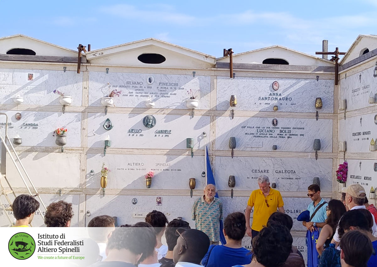 Nel primo pomeriggio, un a folta delegazione si è recata presso il locale cimitero di Ventotene per rendere omaggio ad Altiero Spinelli e Luciano Bolis. Sono intervenuti Castagnoli e Dastoli, quest’ultimo per anni collaboratore di Spinelli.
